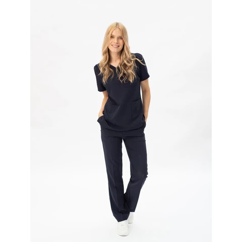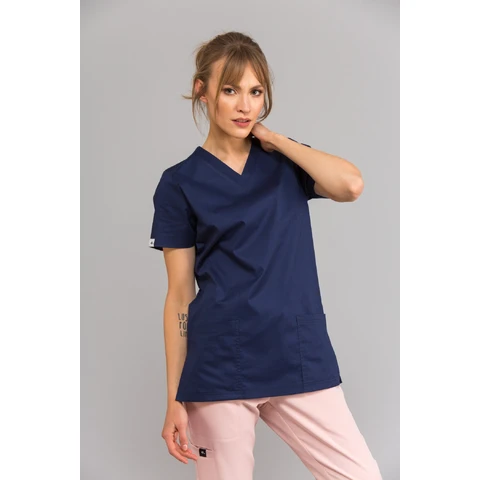 ROZA Dametunika med knapper i front Ink Blue+White XL
