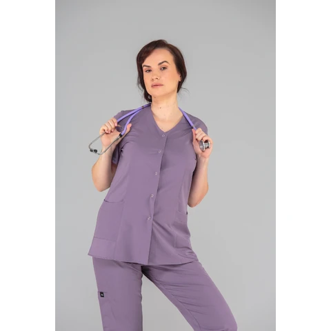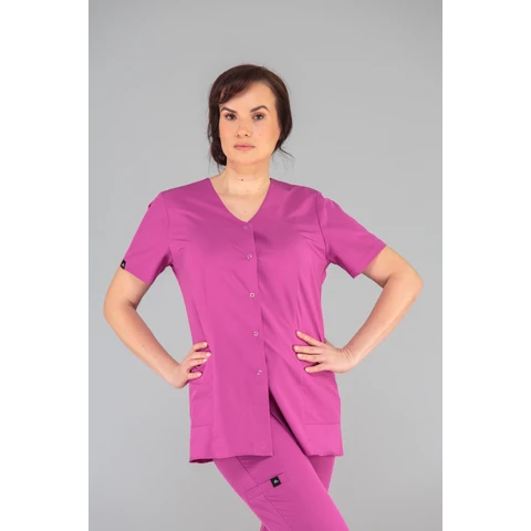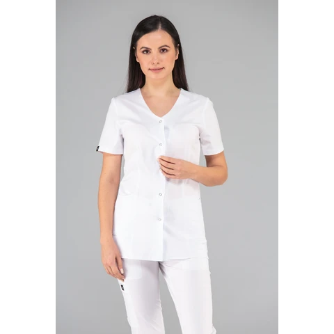 ROZA Dametunika med knapper i front White+Powder Pink XXL