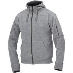 Jakken er utstyrt med to lommer, glidelås i front og elastisk ribbestrikk i hals, ermer og nederkant.