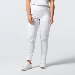 Dame mid-waisted bukse med ribbestrikket strikk i bena og ribbestrikket midjebånd.