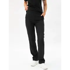Damebukse med rette ben og elastisk strikk og snøring i midjen.