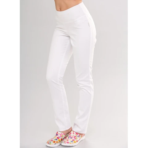 Damebukse med rette ben og elastisk strikk og snøring i midjen.