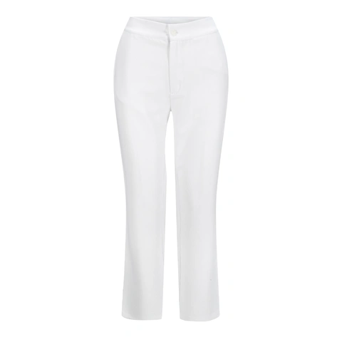 Damebukse med rette ben og elastisk strikk og snøring i midjen.
