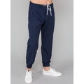 Herrebukse med ribbestrikket mansjett nederst i bena og snøring i midjen.