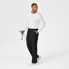 Buksen er utstyrt med åtte lommer og splitt i bena.