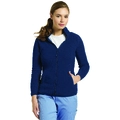 Fasongsydd damejakke med ribbestrikket mansjetter neders på ermene.