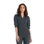Dametunika med ribbestrikket V-hals og ribbestrikket stretch i sidene.