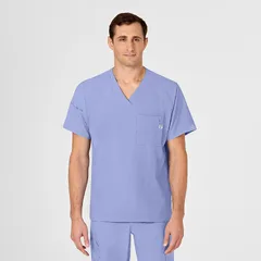 Herretunika med v-hals og ribbestrikket stretch i halsen og sidene.