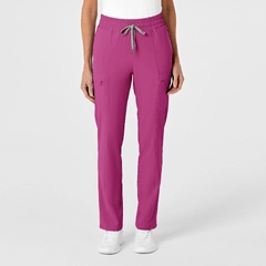 Stretchy dame bukse med strikk i livet, som er utstyrt med seks lommer og snøring i livet.