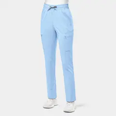 Stretchy dame bukse med strikk i livet, som er utstyrt med seks lommer og snøring i livet.