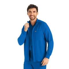 Lett og funksjonell skjortejakke i 100 % polyester poplin, designet for helsepersonell. Fire praktiske lommer og skjult trykknapplukking gir et profesjonelt og komfortabelt arbeidsplagg.